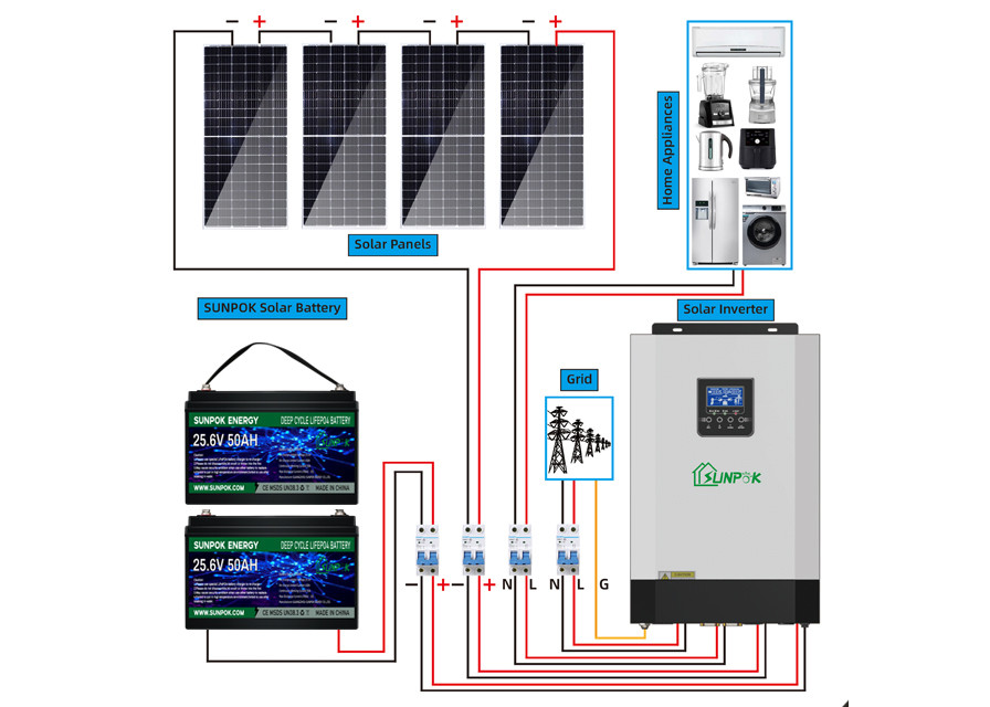 โซลูชันระบบจัดเก็บพลังงานแสงอาทิตย์แบบไฮบริดของชุดระบบพลังงานแสงอาทิตย์ในบ้านของ sunpok ใช้การออกแบบระบบที่มีประสิทธิภาพสูงหน่วยเก็บพลังงานใช้โมดูลเก็บพลังงานมาตรฐานที่ประกอบด้วยแบตเตอรี่ลิเธียมไอออนรอบลึกแผงโซลาร์เซลล์และหน่วยเก็บพลังงานสามารถขยายได้อย่างยืดหยุ่นเพื่อตอบสนองความต้องการของผู้ใช้ที่เก็บข้อมูลอัจฉริยะสามารถควบคุมการออกแบบแบบรวม ระบบจึงเรียบง่ายและเชื่อถือได้มากขึ้น