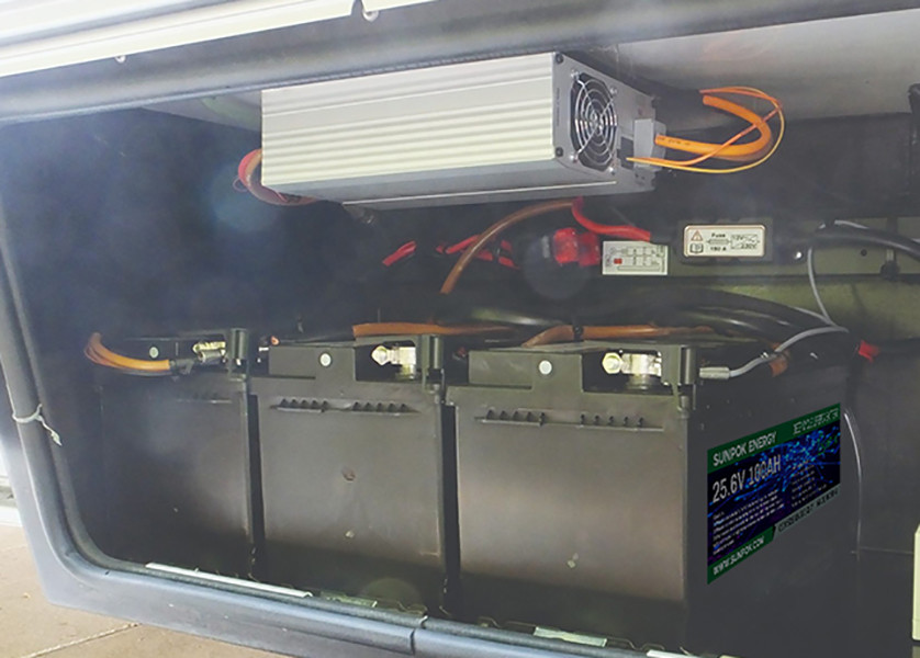 แบตเตอรี่ Sunpok ใช้เซลล์ลิเธียมไอรอนฟอสเฟตซึ่งมีอายุการใช้งานมากกว่า 5,000 รอบที่ 50% DoD และ 3,000 รอบที่ 80% DoD