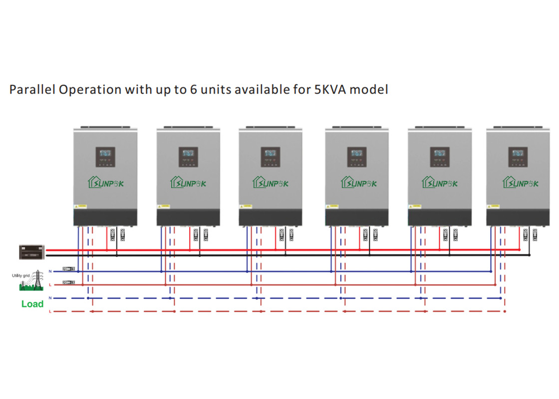 Sunpok 5Kw เฟสเดียวอินเวอร์เตอร์ออฟกริดความถี่สูงเหมาะสำหรับพื้นที่ที่ไม่มีไฟฟ้า พื้นที่พเนจร สถานีฐานการสื่อสาร พื้นที่ที่มีไฟฟ้าไม่เสถียร เกาะ เสาชายแดน สำนักงานจัดการทิวทัศน์ แผงขายหนังสือพิมพ์ ชุดแบตเตอรี่สำหรับผู้ผลิตแบตเตอรี่ ฯลฯ มาพร้อมกับจอแสดงผล LED รองรับ USB/RS232/RS485/Bluetooth/Dry-contact การออกแบบที่กะทัดรัด และประสิทธิภาพที่คุ้มค่า