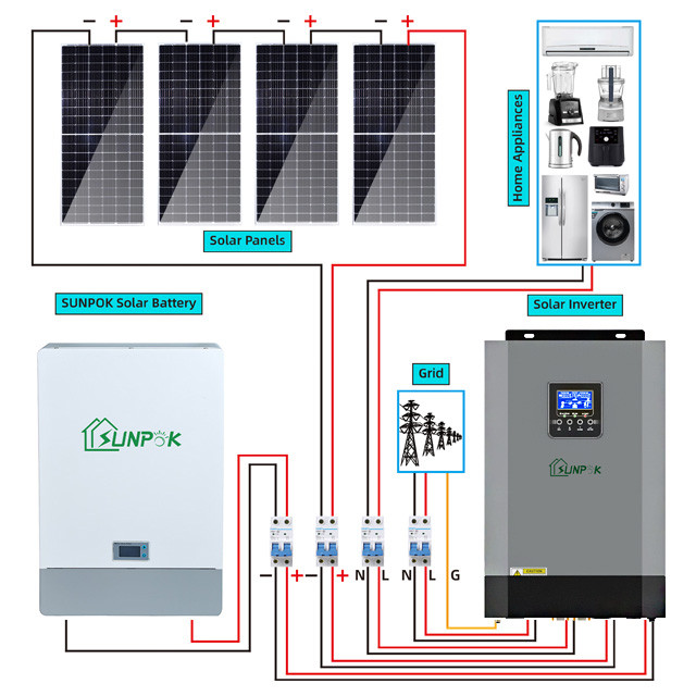โซลูชันระบบจัดเก็บพลังงานแสงอาทิตย์แบบไฮบริดของชุดระบบพลังงานแสงอาทิตย์ในบ้านของ sunpok ใช้การออกแบบระบบที่มีประสิทธิภาพสูงหน่วยเก็บพลังงานใช้โมดูลเก็บพลังงานมาตรฐานที่ประกอบด้วยแบตเตอรี่ลิเธียมไอออนรอบลึกแผงโซลาร์เซลล์และหน่วยเก็บพลังงานสามารถขยายได้อย่างยืดหยุ่นเพื่อตอบสนองความต้องการของผู้ใช้ที่เก็บข้อมูลอัจฉริยะสามารถควบคุมการออกแบบแบบรวม ระบบจึงเรียบง่ายและเชื่อถือได้มากขึ้น