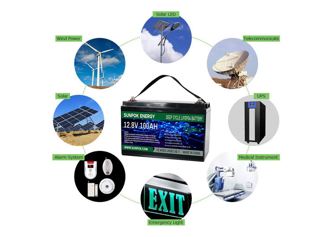 Sunpok แบตเตอรี่ลิเธียมไอออนฟอสเฟต Deep Cycle 12 โวลต์ 24 โวลต์ ออกแบบมาโดยเฉพาะสำหรับแบตเตอรี่ตะกั่วกรดรอบลึกที่มีขนาดแพ็ค BCI มาตรฐานเหมาะสำหรับสภาพแวดล้อมการใช้พลังงาน เช่น ที่เก็บพลังงานแสงอาทิตย์, ที่เก็บพลังงานลม, RV, เรือยอทช์ และยานพาหนะความเร็วต่ำอายุการใช้งานเป็น 5-8 เท่าของแบตเตอรี่ตะกั่วกรด และมีน้ำหนักเพียงครึ่งหนึ่งของแบตเตอรี่ตะกั่วกรดBMS อัจฉริยะในตัว (ระบบจัดการแบตเตอรี่) พร้อมซอฟต์แวร์ป้องกันขั้นสูง สามารถปกป้องความปลอดภัยของแบตเตอรี่ได้อย่างเต็มที่