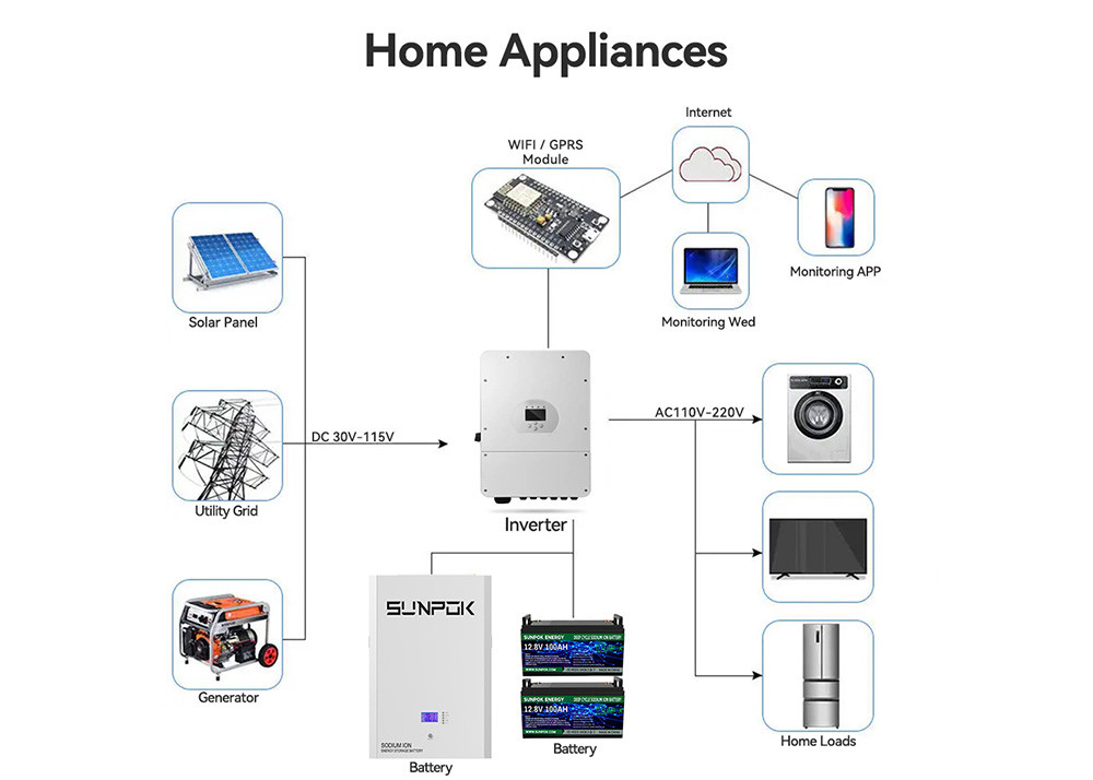 การควบคุมการใช้พลังงานของคุณไม่เคยง่ายกว่านี้ อินเตอร์เฟซที่ใช้ง่ายบนแบตเตอรี่โซเดียมไอออนของ SUNPOK ทําให้มันง่ายสําหรับคุณที่จะติดตามและควบคุมการใช้พลังงานของคุณด้วยข้อมูลทั้งหมดที่คุณต้องการที่ปลายนิ้วของคุณคุณสามารถตัดสินใจว่า จะใช้พลังงานที่เก็บไว้เมื่อไหร่ และอย่างไร